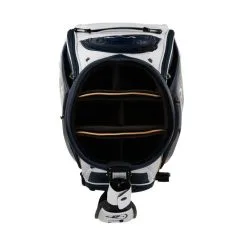 The Callaway Paradym Staff Tour Golf Bag is a limited edition model that stands out from the rest. Its 10″ 6-way top with full-length dividers keeps your clubs well-organized and protected from damage. The bag also features 8 pockets, including a range finder and valuables pocket, providing ample storage space for all your golfing essentials.